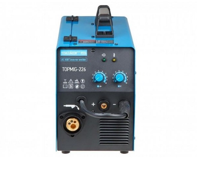 Сварочный полуавтомат Solaris TOPMIG-226 - это профессиональный сварочный аппарат для сварки режимах: MIG/MAG/FLUX. В режиме FLUX есть функция смены полярности. Поставляет в хорошей базовой комплектации. Оснащен евроразъемом для горелки.