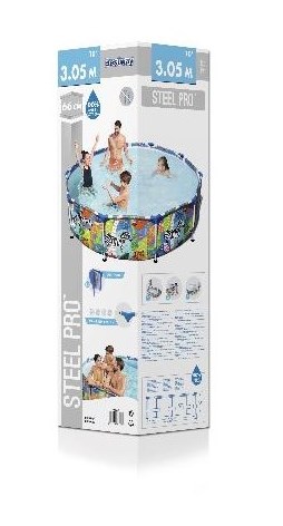 Каркасный бассейн от производителя Bestway - отличный качественный продукт. Основной особенностью этого бассейна является простая и быстрая установка, которая не займет у вас много времени и сил. Стенки бассейна выполнены из трех прочных слоев – два слоя плотного винила и один из полиэстера. Каркас надежно удерживает всю конструкцию бассейна даже при максимальных нагрузках. Предусмотрен сливной клапан, который подсоединяется к садовому шлангу. При покупке каркасного бассейна Bestway 56985 вы подарите себе и вашим детям массу положительных эмоций и веселого настроения.