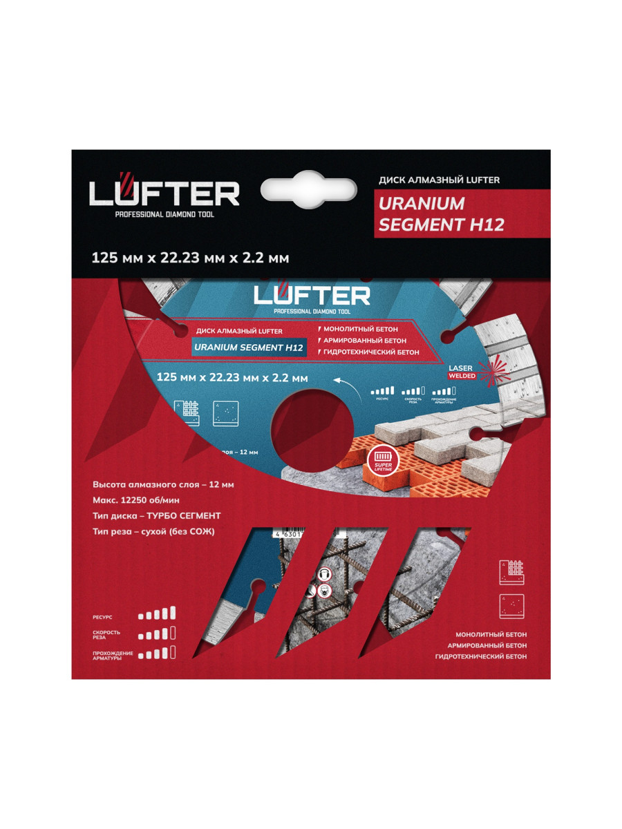 Диск алмазный 125х22,23х2,2х12 Турбо сегмент армир бетон LUFTER URANIUM SEGMENT H12 024-125