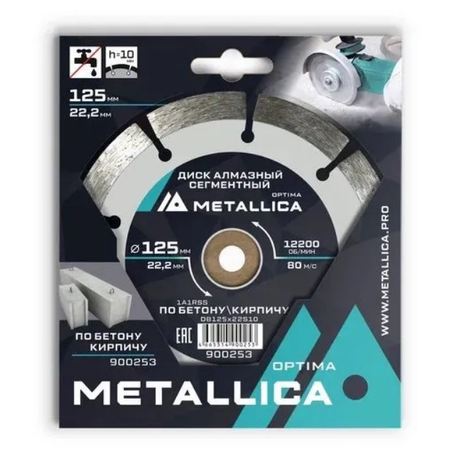 Диск алмазный 125x22,2x1,9x10 сегментный по бетону кирпичу METALLICA Optima 900253