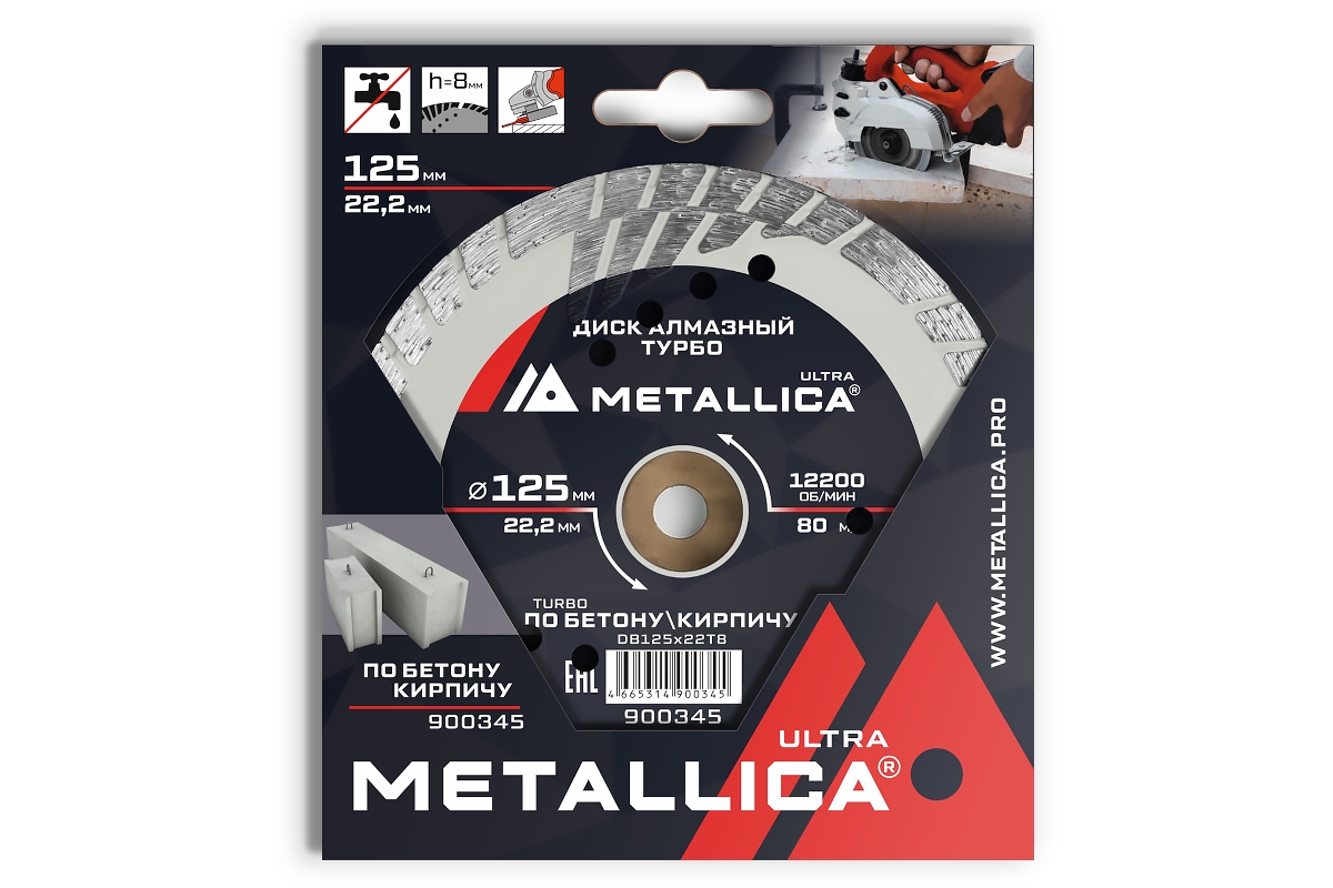 Диск алмазный 125x22,2x2,4x8 турбо с боковой защитой по бетону кирпичу METALLICA Ultra 900345