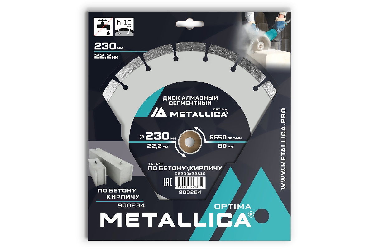 Диск алмазный 230x22,2x2,4x10 сегментный по бетону кирпичу METALLICA Optima 900284
