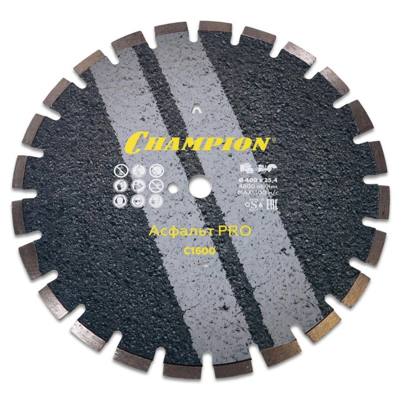 Диск алмазный CHAMPION асфальт PRO 400/25, 4/10 Asphafight (асф, бетон, свежий бетон, мягкие блоки)