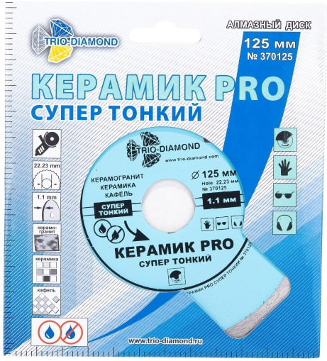 Диск алмазный 125х22.23х1,1х6 Керамик PRO сплошной супер тонкий TRIO DIAMOND 370125