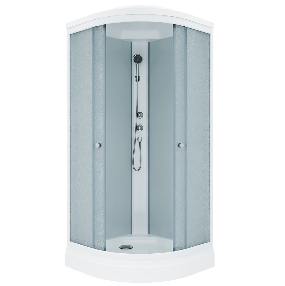 Душевая кабина Triton Вельвет 90х90 А предназначена для использования в ванных комнатах. Благодаря угловой конструкции и поддону в форме четверти круга модель можно вписать даже в ванные комнаты небольшой площади. Кабина оснащена регулирумыми по высоте ножками, 2-х секционными раздвижными дверцами и крышей. Поддон выполнен из акрила, устойчивого к механическим повреждениям и обладающего небольшим весом и повышенной шумоизоляцией.