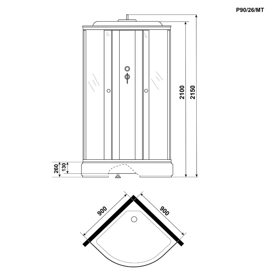 Душевая кабина 90х90х215 Niagara Promo 90/26МТ, средний поддон 26см, матовое стекло