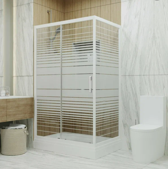Душевой угол 100х80 А Фьюжн, прямоугольный, низкий поддон, белый, Полосы