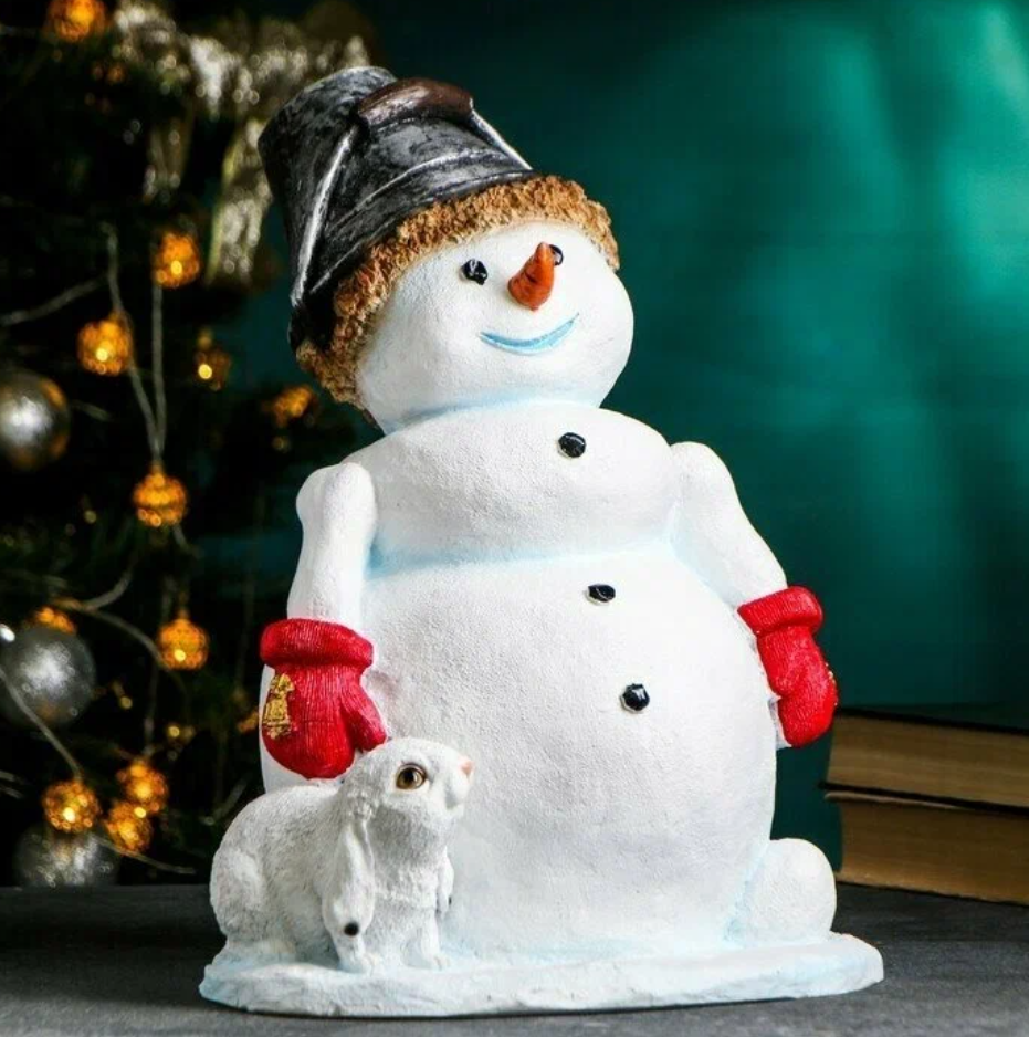 Фигура новогодняя Снеговик с ведерком на голове 30х28см 123360