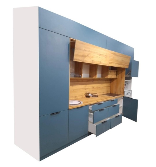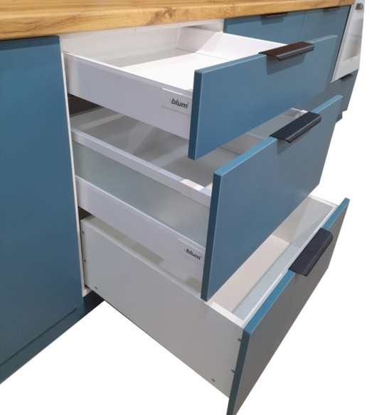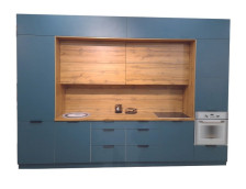 Кухня Моника, фасады ЛДСП Бензин/Дуб Вотан, фурнитура BLUM (Австрия), длина 3,6м