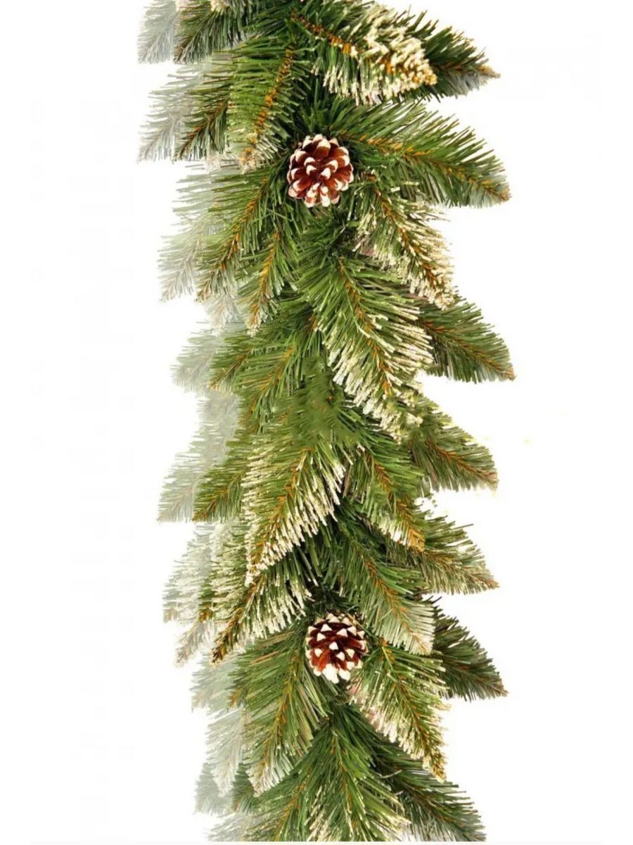 Гирлянда 300см искусственная хвоя Альпийская с белыми шишками лента ПВХ