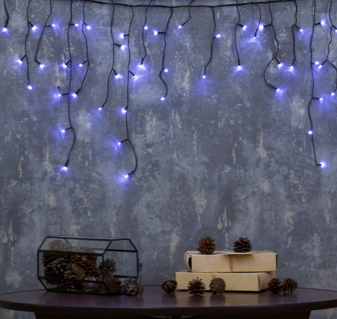 Гирлянда «Бахрома» — это горизонтальный шлейф с нитями различной длины на расстоянии 10 см друг от друга. Она состоит из 4 - 8 секций так, что нижний край напоминает волны.