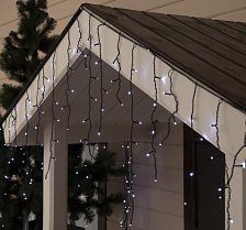 Гирлянда «Бахрома» — украшение весьма эффектное, оно непременно привлекает к себе внимание. Целый ряд нитей с множеством ярких лампочек прекрасно впишется в любой интерьер и украсит фасад здания. Такому украшению не страшен мороз, оно не разобьётся. Порадуйте себя и прохожих праздничными огнями, повесив «Бахрому» на окно, создайте загадочную и сказочную атмосферу в доме, разместив гирлянду под потолком или на стенах, добавьте новогодний дух, прикрепив светящуюся занавесь к полкам или спинке кровати.