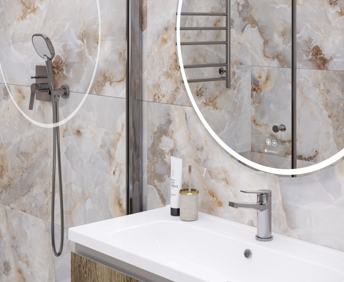 Керамогранит (60х120) Onyx Magic Brown серо-коричневый полированный (CeraDim, Индия)