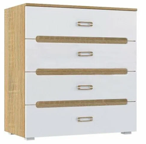 Комод Ким станет важной частью интерьера комнаты. Этот вместительный предмет мебели позволит компактно хранить вещи, освободив место в шкафу. Корпус конструкции выполнен в цвете Сонома, а фасад - в цвете Белый глянец. Яркий, стильный, практичный комод - настоящая находка для тех, что предпочитает украшать интерьер оригинальными и функциональными предметами мебели.