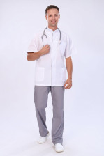 Костюм медицинский мужской 7-50-01-1 тиси белый/серый 0/34 р50/170-176 короткий рукав