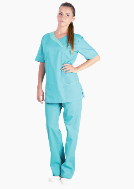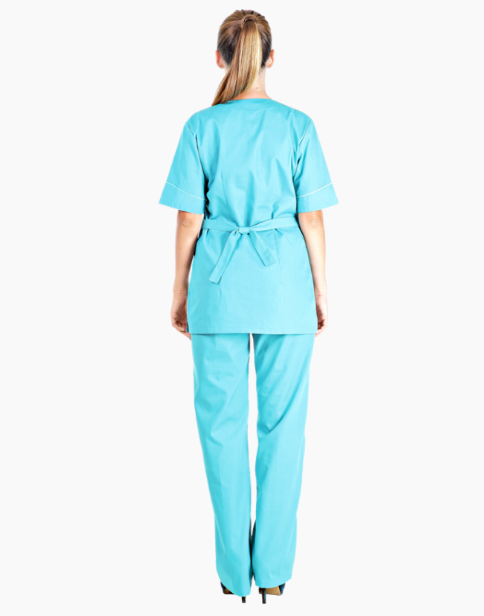 Женский костюм ШАРМ, состоящий из блузы и брюк, создан для комфортной работы медицинского и обслуживающего персонала. Костюм выполнен из трудно мнущейся ткани Тиси, обеспечивающей комфортную носку, отличные гигиенические и износостойкие свойства. Блуза прямого силуэта оснащена короткими рукавами с отворотами и кантом из отделочной ткани, фигурным вырезом горловины и спинкой с хлястиком по линии талии.