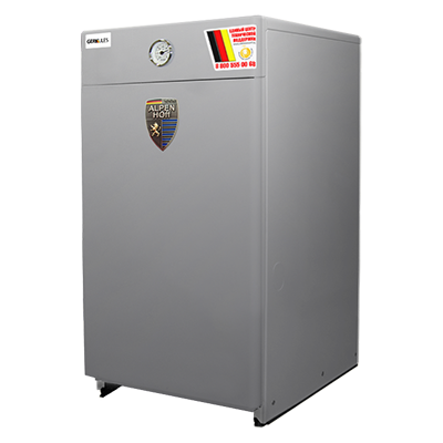 ALPENHOFF GERKULES 25 кВт - напольный одноконтурный газовый котел оснащён газовым клапаном SIT(Италия). Стальной теплообменник, пьезорозжиг (энергонезависимый). Рабочее давление 3 атм. Возможно использовать в закрытой системе отопления. Теплообменник из высококачественной стали (3 мм). Энергонезависимый газовый клапан SIT (Италия). Котел не требует подключения к электросети. Полная безопасность эксплуатации. Возможность работы на сжиженном газе (при установке соответствующего комплекта). Стильный европейский дизайн. Пониженный уровень шума. Котлы адаптированы для Российских условий эксплуатации. Для обеспечения высокой стойкости к резким перепадам температуры теплообменник котла выполнен из стали. Теплообменная часть котла выполнена в виде жаровых труб с турбулизаторами. Основные горелки из жаростойкой нержавеющей стали выполнены с щелевыми пазами и обеспечивают низкофакельное равномерное тепловое поле. Стабилизатор давления газа, встроенный в газовый блок, обеспечивает стабильную теплопроизводительность котла с оптимальными параметрами горения газовоздушной смеси независимо от давления газа в сети. Тягопрерыватель (стабилизатор тяги) обеспечивает стабильное разрежение в топке.