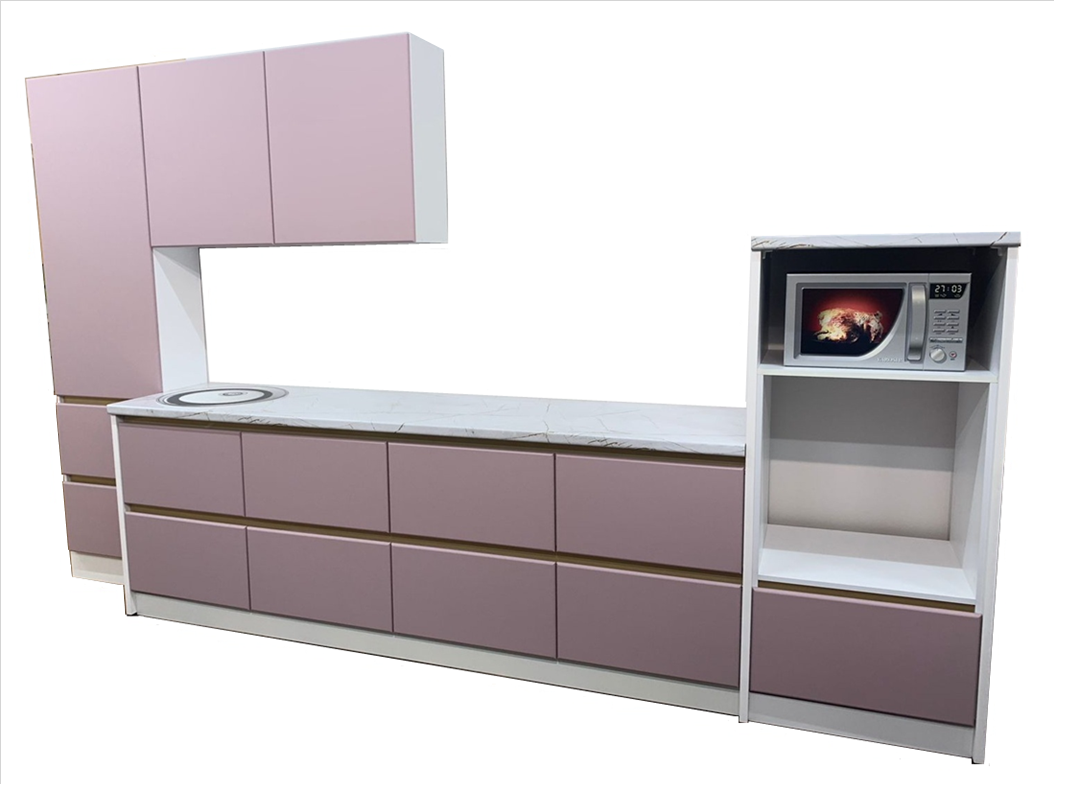 Кухня Элви, фасады МДФ фрезерованные в пленке Пудра шафран, профиль Gola, длина 3,65м