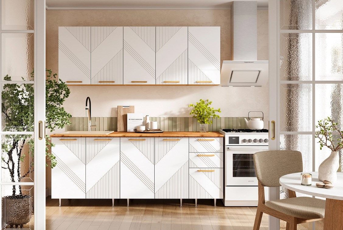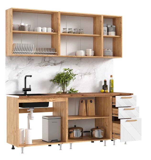 Кухня Ирис 2,0м (490) Браш Вайт/Дуб крафт (дуб вотан)