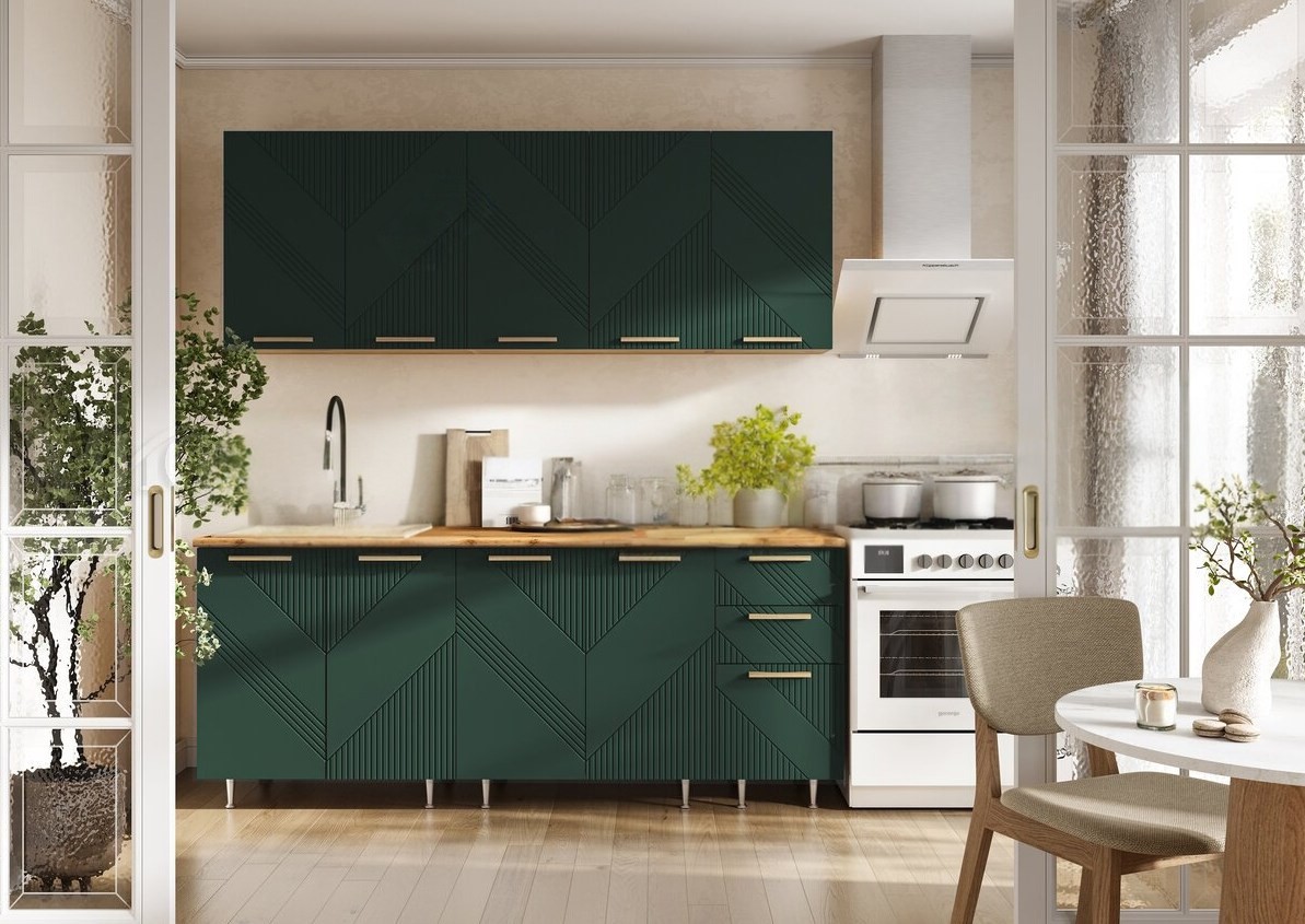 Кухня Ирис 2,0м Браш Мени Грин/Дуб крафт (дуб вотан) 490