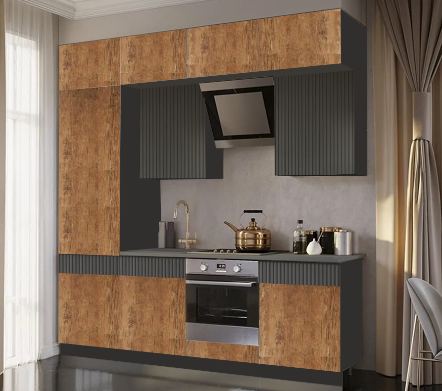 Кухня Оливия 2,4м Экзотическое дерево Амазония/Графит софт