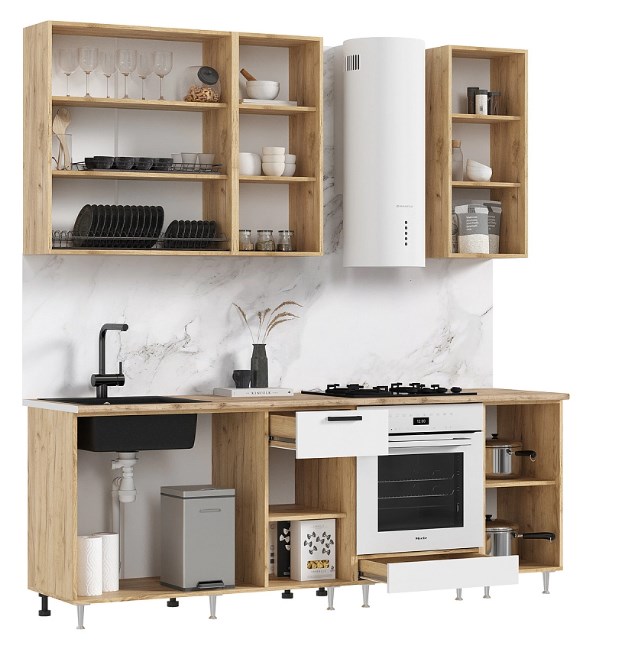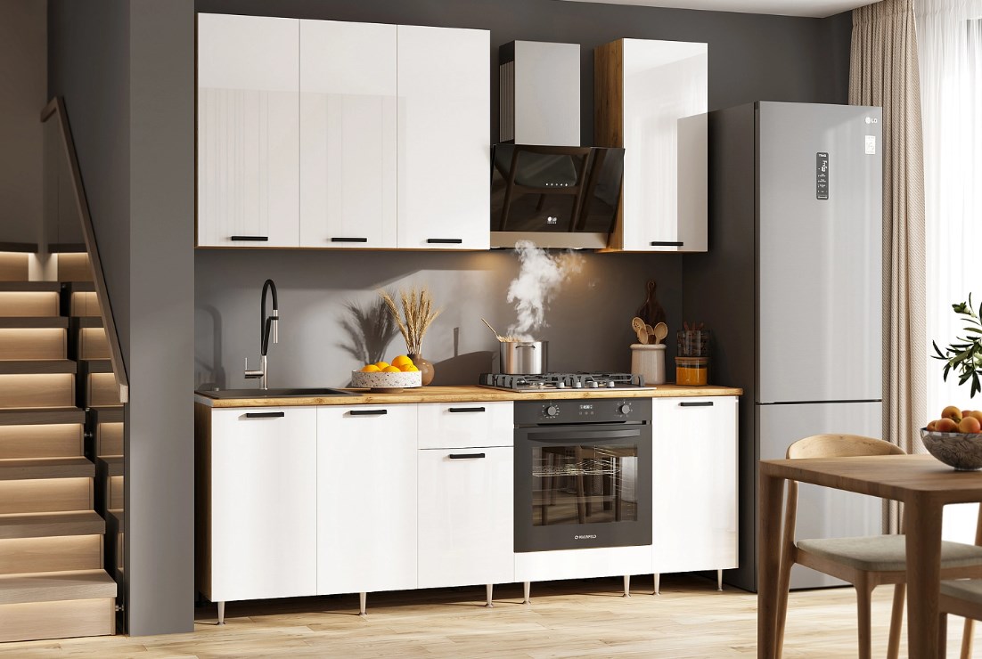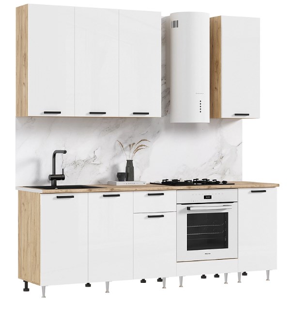 Кухня Рио Нью 2,2/900м Белый глянец/Дуб крафт (дуб вотан)