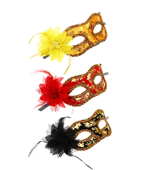 Маска карнавальная 21,5х9см с цветком и перьями 342-104
