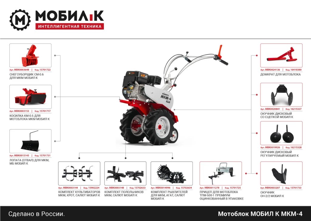 Мотоблок МОБИЛ К МКМ-4 КОМФОРТ (двигатель Мобил К 168FB 6,5 л/с диаметр фрезы 340 мм ширина фрезы 730 мм)