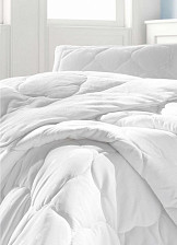 Двустороннее одеяло с наполнением из силиконизированного волокна. Сторона с махровым покрытием согреет вас зимой, а сторона с классической хлопковой поверхностью сделает ваш сон комфортным в летнюю жару.
