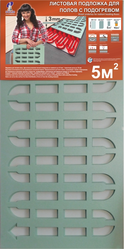 Подложка листовая перфорированная 3 мм (5 кв м) для теплых полов