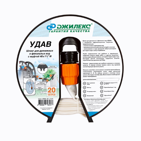 Шланг для дренажных и фекальных вод с муфтой 40мм х 1 1/2" "Удав" Джилекс