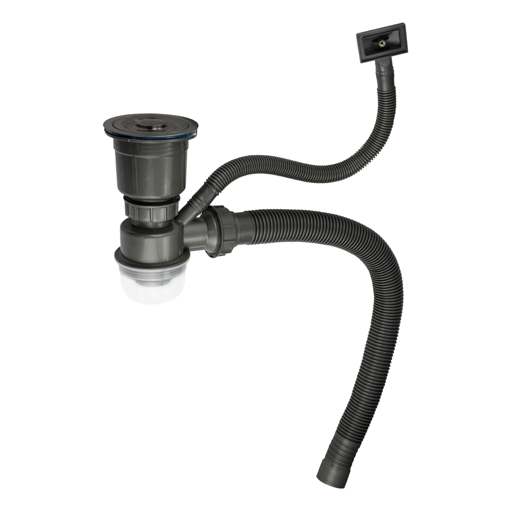 Сифон для кух мойки с переливом+гофра Графит со съемной корзиной для мусора 8734 Fabia