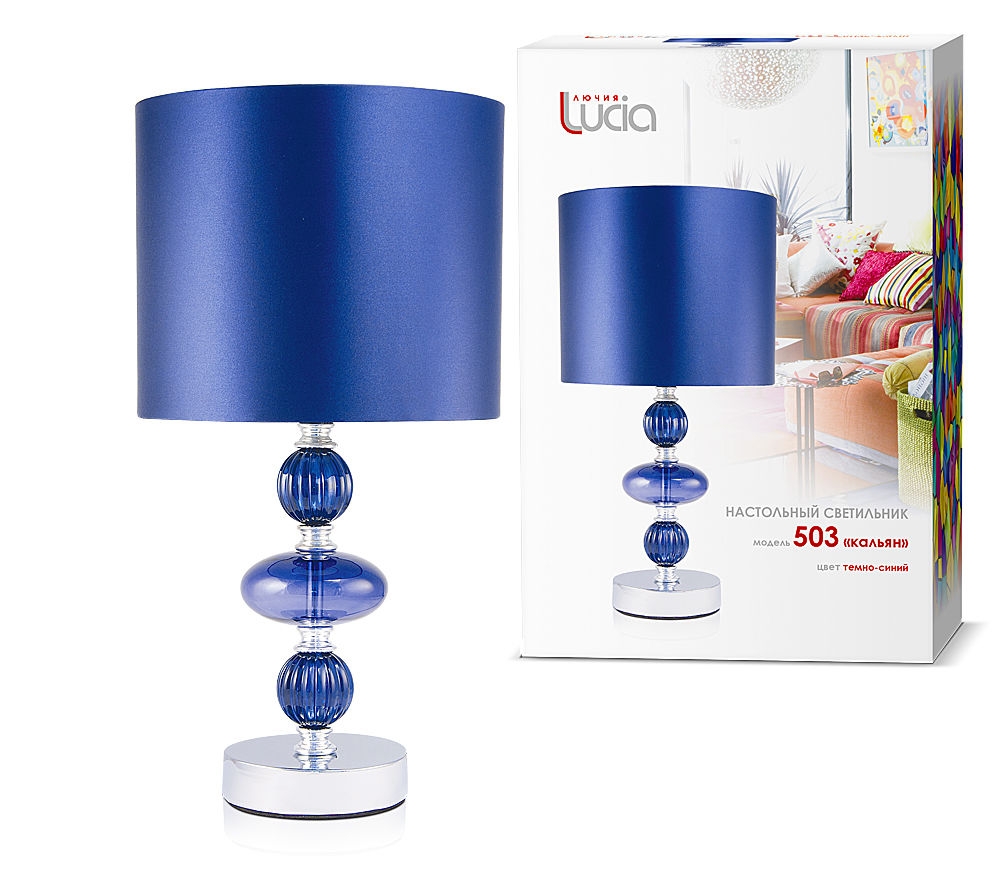 Светильник настольный Лючия 503 "Кальян" никель/темно-синий 60W E27