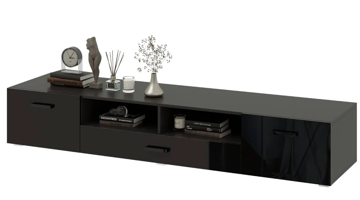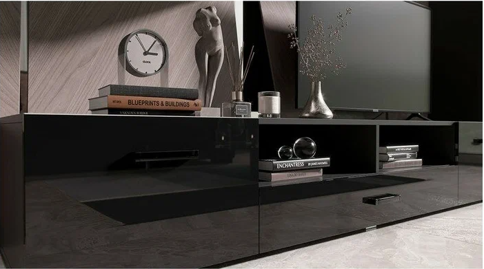 Тумба ТВ Николь в черном глянцевом исполнении - это стильное и функциональное решение для вашей гостиной. Черный цвет глянцевой отделки создает элегантный и современный вид, который идеально впишется в любой интерьер. Тумба ТВ Николь обеспечит вам удобное размещение телевизора и другой аудиовизуальной техники, а также предоставит место для хранения различных предметов. Кроме того, благодаря своей компактной конструкции, она поможет оптимизировать использование пространства в вашей гостиной.