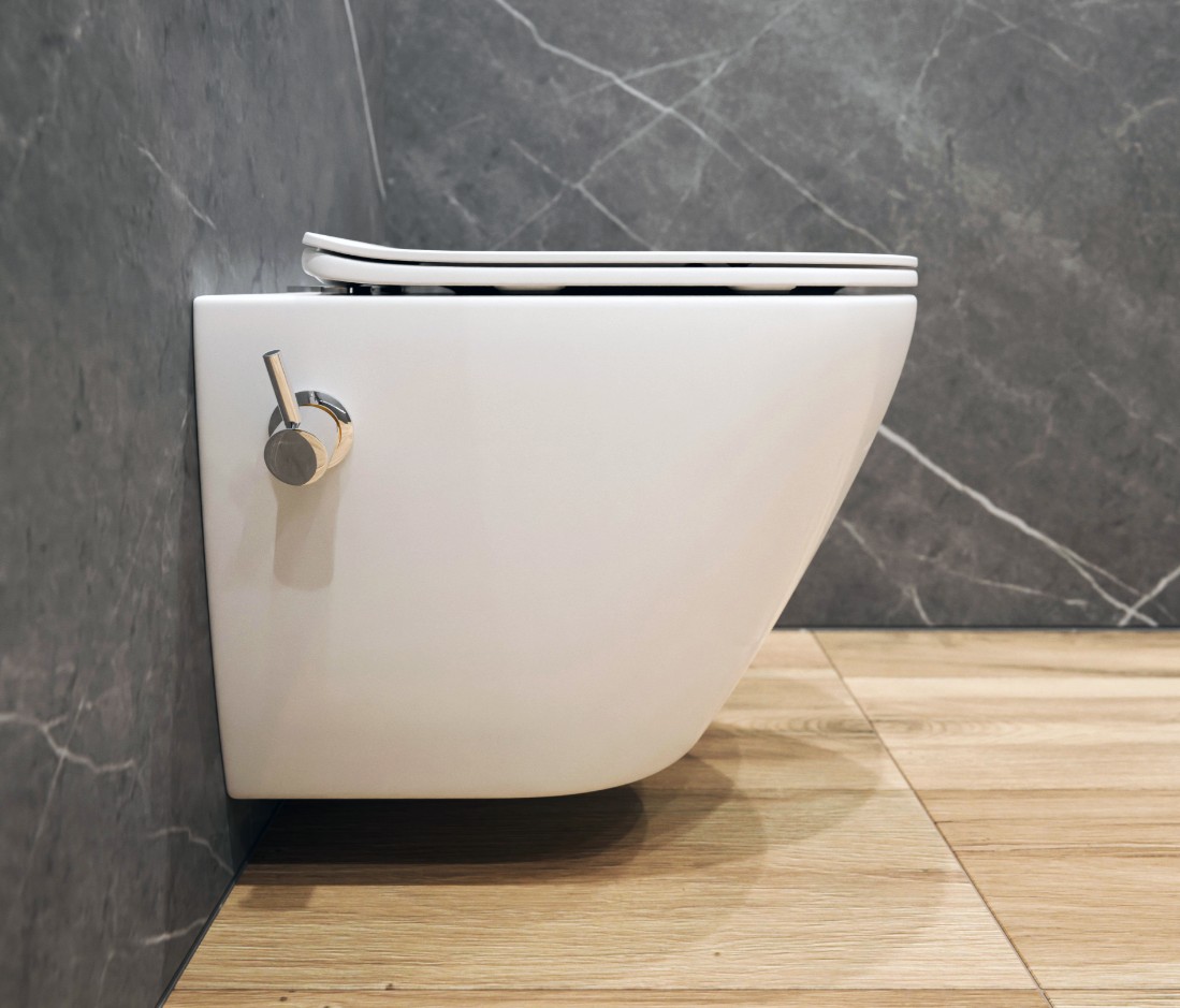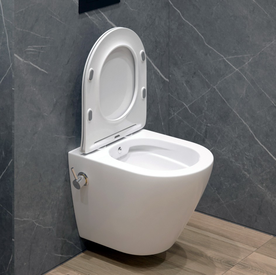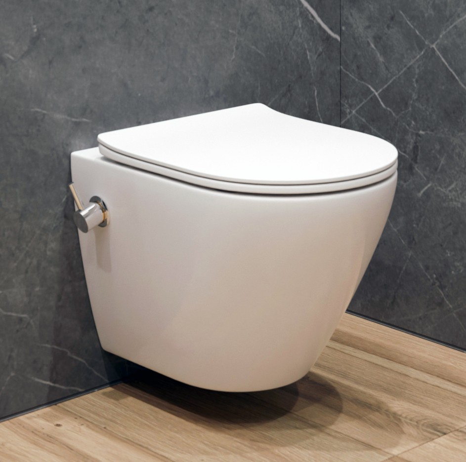 Унитаз подвесной К505В c встроенным биде, безободковый с сиденьем ДП тонкое