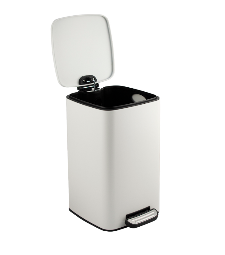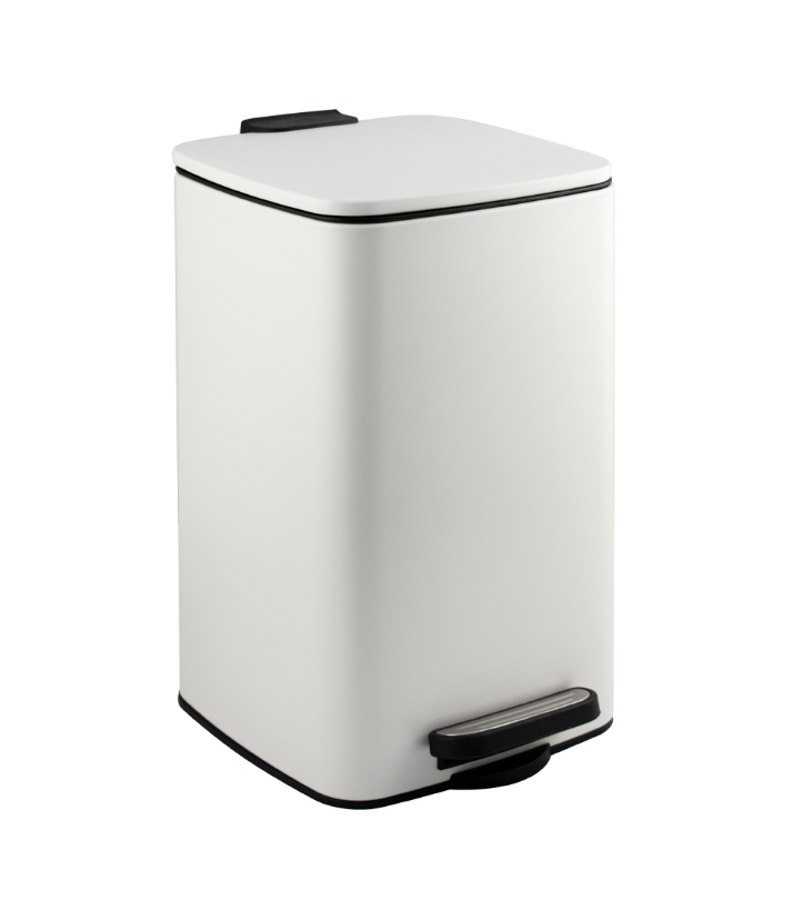 Квадратное ведро белого цвета для хранения мусора с педалью и откидной крышкой, прекрасно подойдет для ванной комнаты, туалета или кухни и офиса. Ведро оснащено пластиковым гигиеническим контейнером с металлической ручкой для переноса и механизмом поднятия крышки, при помощи нажатия на педаль. Отличное решение для утилизации мелкого бытового мусора. Наличие крышки обеспечивает защиту от неприятных запахов и распространения бактерий, а педальная система открывания позволяет не прикасаться к баку руками. Нескользящая пластиковая основа ведра предотвращает повреждение пола.