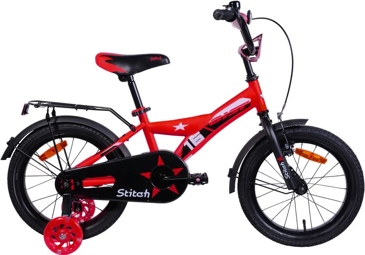 Stitch 16 от Aist – яркий детский велосипед, который подойдет для безопасного обучения езде или для веселых прогулок по городским дворам, дорожкам парком и скверов. Велосипед собран на базе прочной стальной рамы. Байк отзывчивый, легко управляемый. Держать равновесие помогут страховочные съемные колеса. Контроль скорости обеспечивают два тормоза – ободной спереди и ножной. Седло и руль регулируются по высоте. Защита цепи и пластиковые крылья не позволяют грязи из-под колес испачкать одежду и обувь маленького райдера.