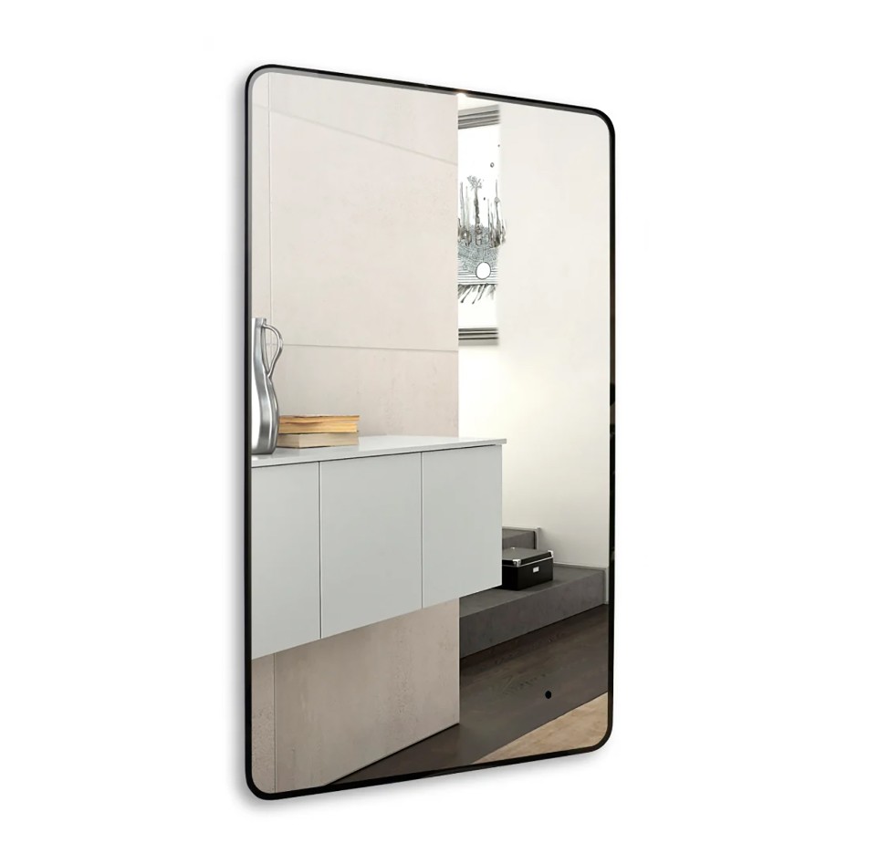 Зеркало Incanto-BLACK 600х1000 -3 с подсветкой, часы, подогрев, сенсорный выключатель